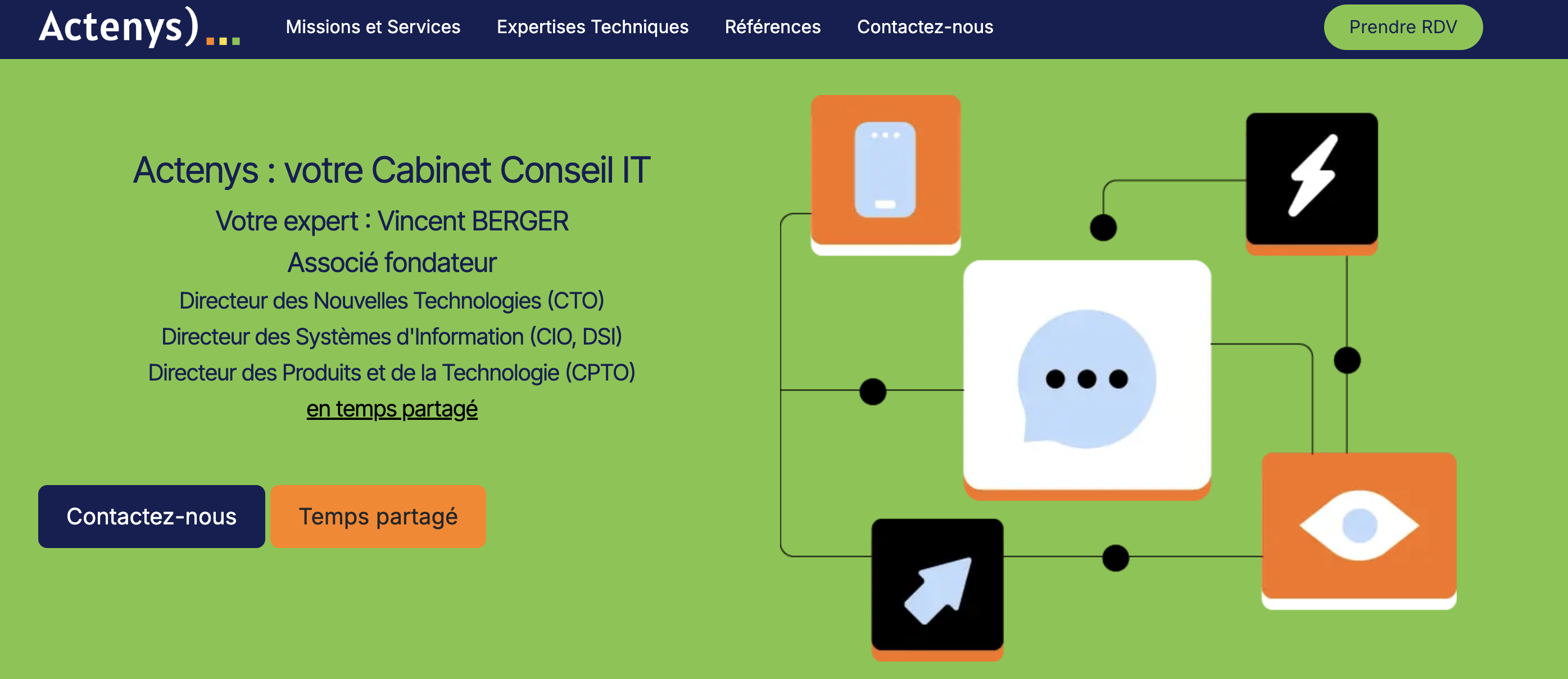 Actenys s'appuie sur l'expérience de son fondateur Vincent Berger. Actenys accompagne les entreprises du secteur privé dans le cadre de projets de transformation digitale, principalement pour le pilotage opérationnel de projets SI complexes.