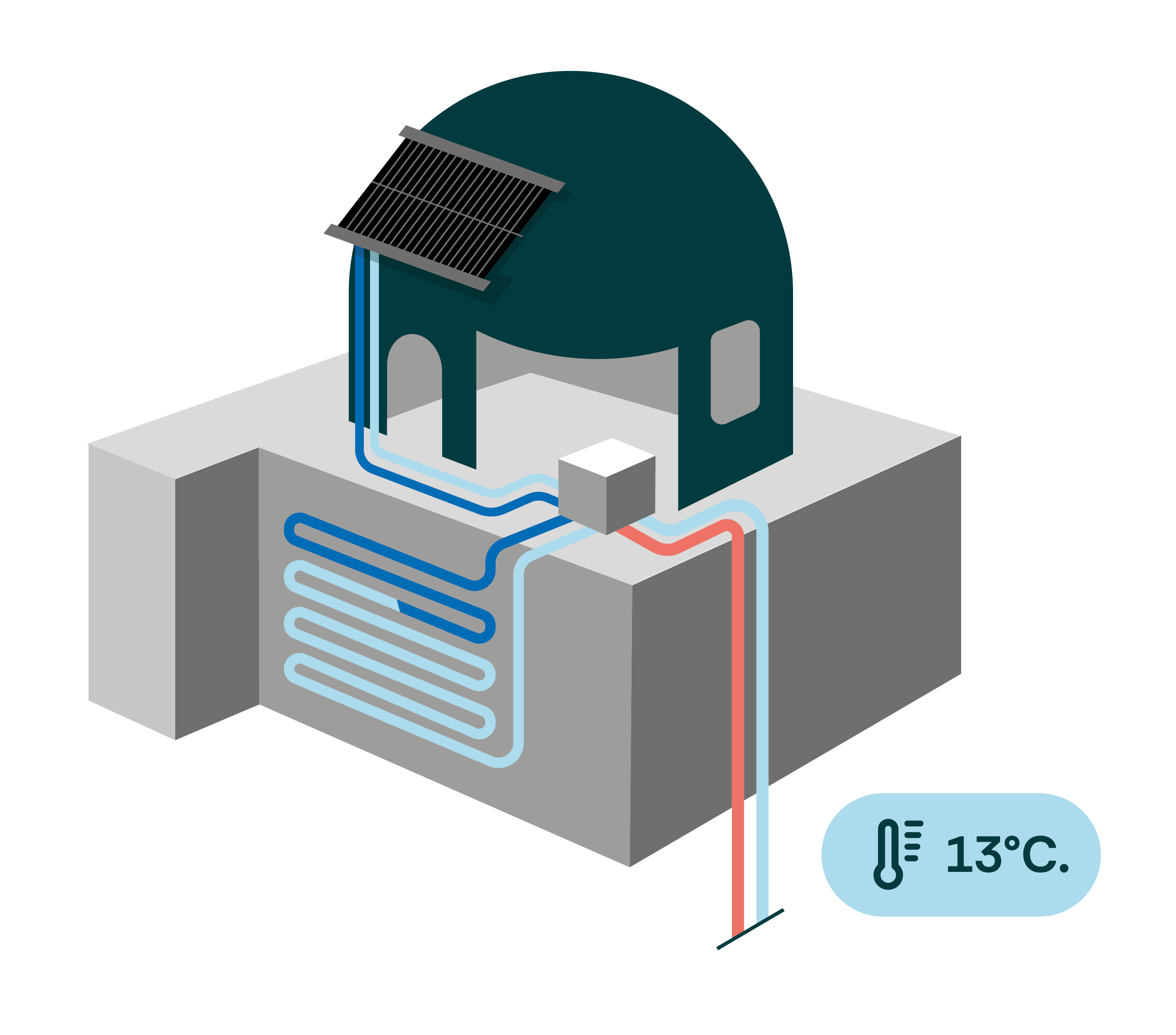 Nous dimensionnons, finançons, installons et maintenons les installations de Géothermie et de Solaire Thermique.